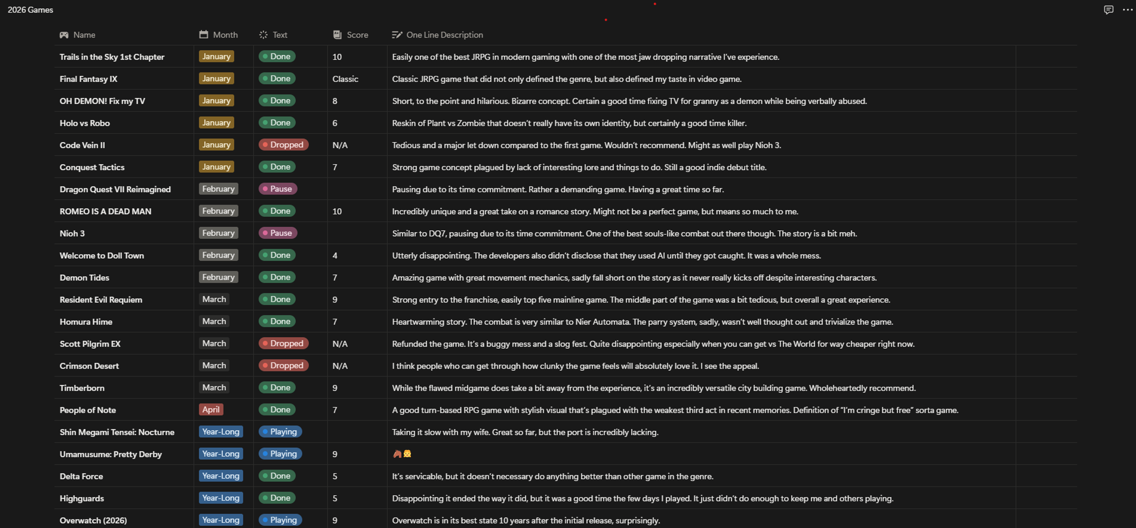 นอกจาก 4 เกมที่ยกมาเม้าท์แบบสั้น ๆ วันนี้แล้ว ก็ยังมีอีกหลายเกมที่เราได้เล่น (และได้เล่นจบไปแล้ว) อย่างเช่น Marathon, Overwatch 2, Homura Hime และ ROMEO IS A DEAD MAN ที่เรายังอยากพูดถึงแบบเต็ม ๆ ซึ่งก็มีแพลนที่จะเขียนไว้แล้วในอีกในอีกไม่กี่อาทิตย์